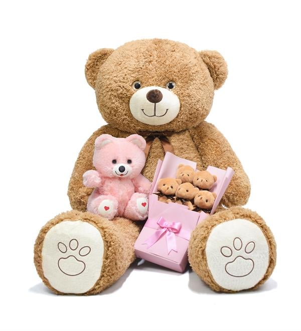 Gold Büyük Pelüş Ayıcık Sevimli Minik Ayıcık ve Pelüş Ayıcık Buketi