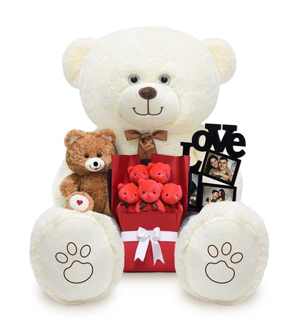 Kişiye Özel Gold Büyük Pelüş Ayıcık Sevimli Minik Ayıcık Buketi ve Love Çerçeve