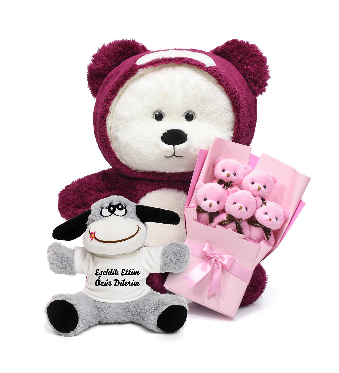 Uykumcuk Ayıcık - Pelüş Ayıcık Buketi ve 25 cm Eşeklik Ettim Eşekçik